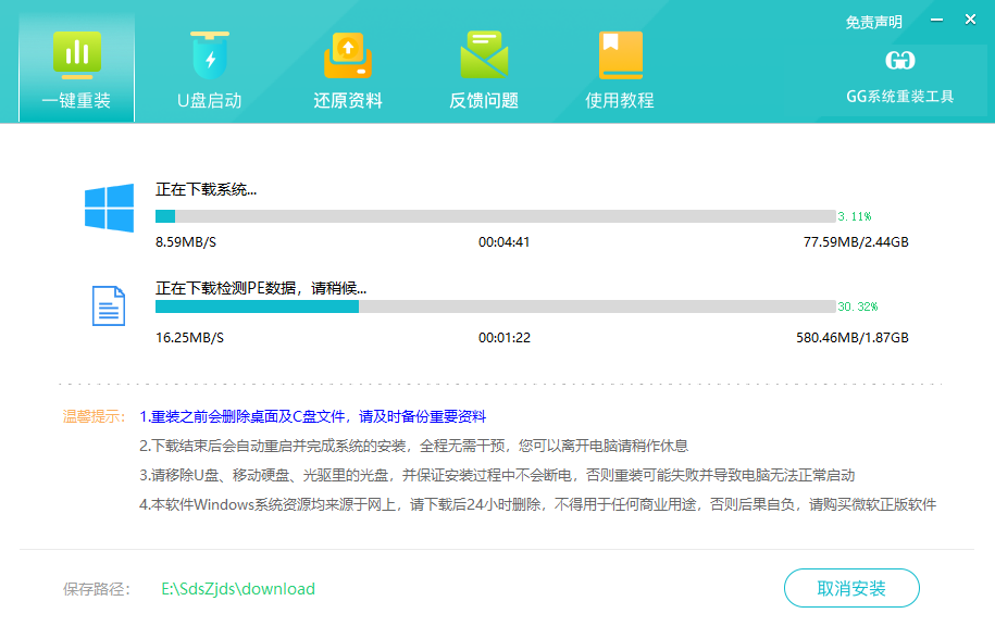 GG系统重装工具是一款比较可靠的系统重装工具,不仅能在线一键重装系统,也能制作u盘重装系统。当前最简单最快速的系统重装软件。它摆脱了传统借助光驱、软件等介质的繁琐,操作者无需任何技术基础,随时随地实现傻瓜式电脑系统重装。让您不再为电脑怎么重装系统而烦恼。
